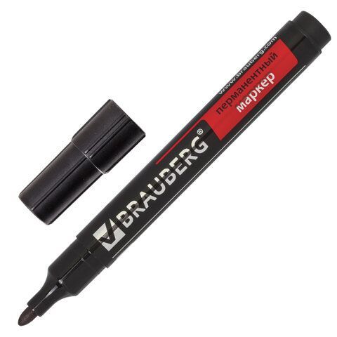 Маркер перманентный черный 3мм круглый наконечник Contract BRAUBERG 1/12/1152 купить оптом и в розницу в Нижнекамске