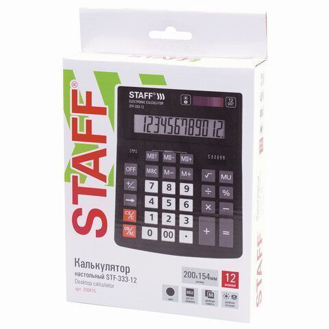 —Калькулятор настольный STAFF PLUS, STF-333, 12 разрядов, двойное питание 200x154мм 1/20/40