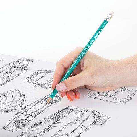 Карандаш ч/гр НВ пластиковый, зеленый корпус, с резинкой, заточенный STAFF 1/12/288 купить оптом и в розницу в Нижнекамске
