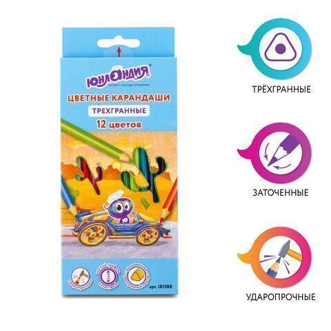 Карандаши цветные 12цв трехгранные с заточкой ЮНЛАНДИЯ 1/12 купить оптом и в розницу в Нижнекамске