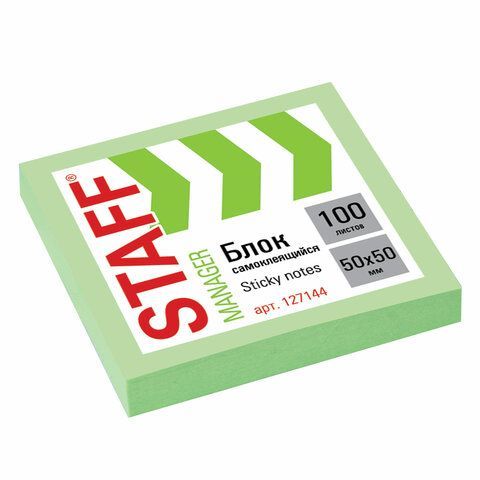 Блок самоклеящийся 50х50мм 100л зеленый пастель STAFF 1/12/384