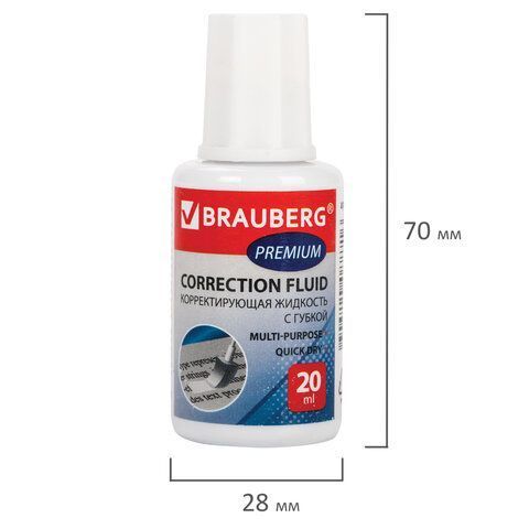 Корректирующая жидкость штрих 20мл флакон с губкой, спирт., ярко-бел Premium BRAUBERG 1/1