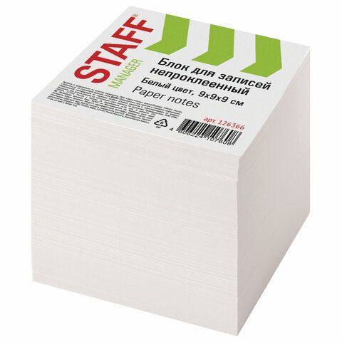 Блок для записей 9х9х9 белый непрокл. белизна 90-92% STAFF 1/18 купить оптом и в розницу в Нижнекамске