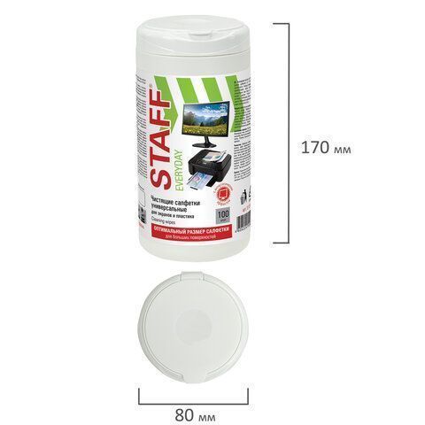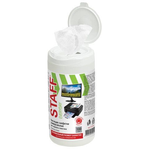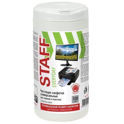 Салфетки для экранов всех типов и пластика универсал. STAFF EVERYDAY,13х15см,туба 100шт,влаж.,511518