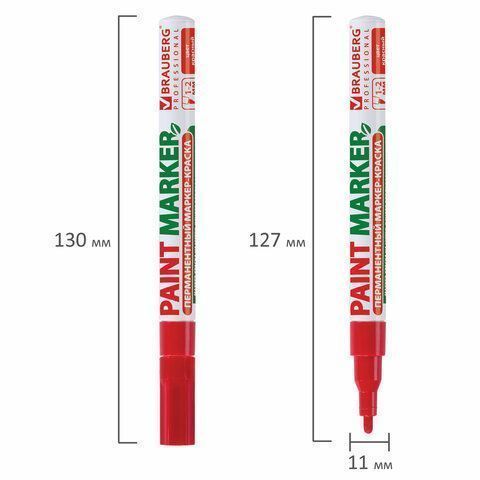 Маркер-краска лаковый красный 2мм, БЕЗ КСИЛОЛА (без запаха), алюминий, BRAUBERG PRO 1/12/1152