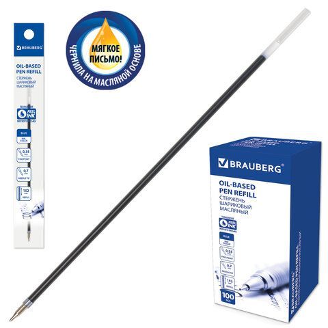 Стержень шариковый масляный синий 152мм узел 0,7мм линия 0,35мм BRAUBERG 1/100 купить оптом и в розницу в Нижнекамске