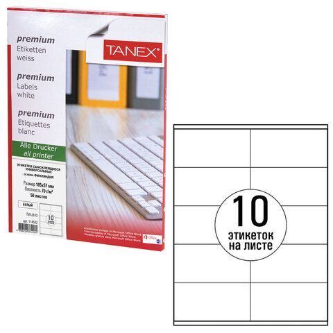 Этикетка самоклеящаяся 105х57мм 50л 10этикеток белая TANEX 1/20 купить оптом и в розницу в Нижнекамске