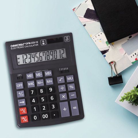 —Калькулятор настольный ОФИСМАГ OFM-333, 12 разрядов, двойное питание 200x154 мм 1/20/40
