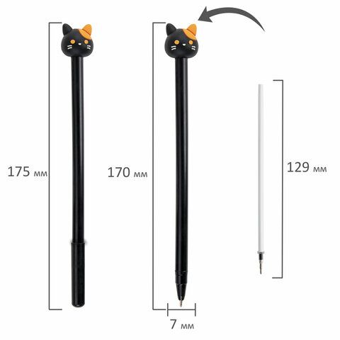 Ручка с топпером шариковая ЮНЛАНДИЯ Кошка корпус ассорти СИНЯЯ узел 0,7мм 1/12
