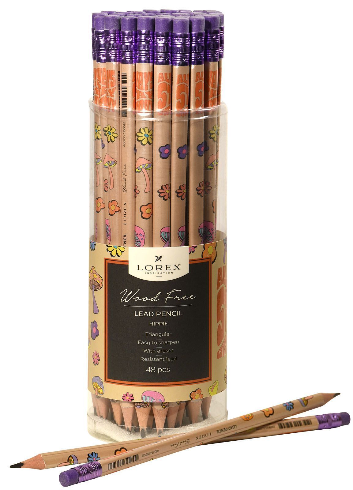 Карандаш ч/гр НВ заточенный трехгранный LOREX WOOD FREE HIPPIE 1/48/576 купить оптом и в розницу в Нижнекамске