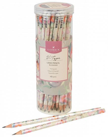 Карандаш ч/гр НВ заточенный трехгранный деревянный LOREХ BLOSSOMS 1/48
