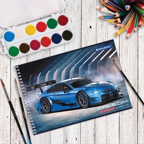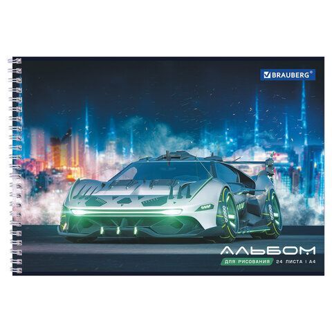 —Альбом для рисования 24л А4 гребень обложка картон BRAUBERG Спорткар 1/10/40