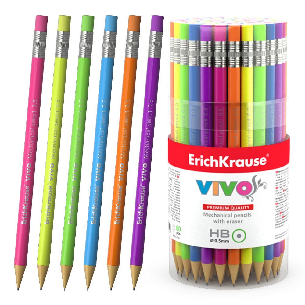 Карандаш ч/гр НВ механический 0,5мм корпус ассорти ErichKrause Vivo 1/60 купить оптом и в розницу в Нижнекамске