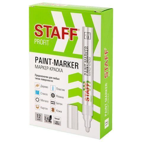 —Маркер-краска лаковый белый 2-4мм нитро-основа STAFF PROFIT 1/12