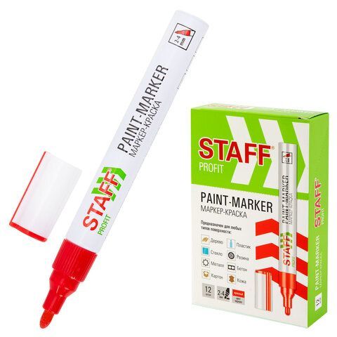 Маркер-краска лаковый красный 2-4мм нитро-основа STAFF PROFIT 1/12 купить оптом и в розницу в Нижнекамске
