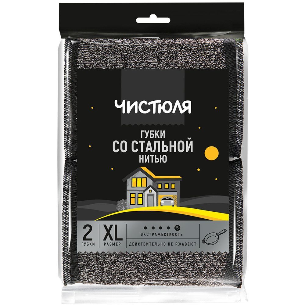 Губка бытовая (2шт) 120х90х15мм со стальной нитью Чистюля 1/33 купить в Нижнекамске с доставкой оптом и в розницу
