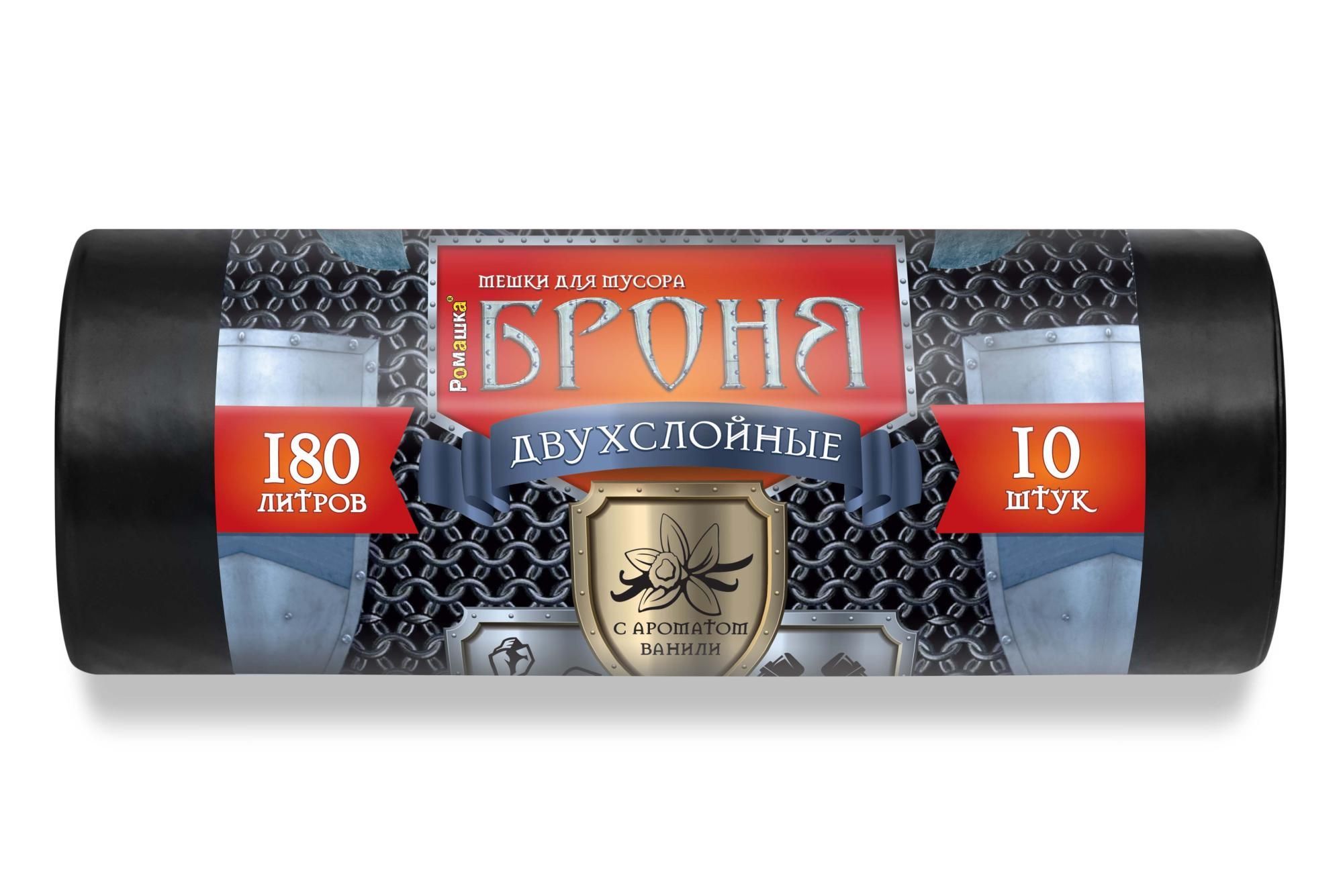 —Мешок для мусора 180л рулон ПВД (90х110)-60 черный БРОНЯ ПРЕМИУМ 2-сл 110г Ромашка (10шт) 1/10
