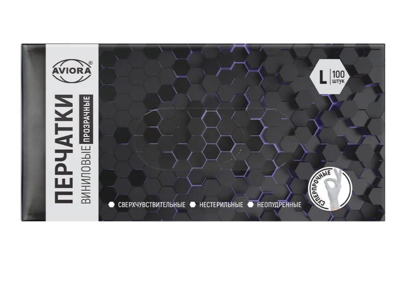 Перчатки смотровые виниловые неопудренные Aviora L 4,5гр 50/500 купить оптом и в розницу в Нижнекамске с доставкой