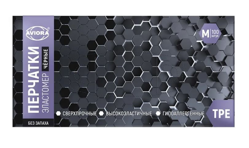 —Перчатки одноразовые эластомер черные Aviora M 50/500