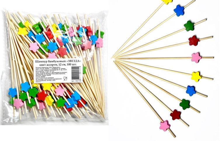 Пика для канапе Звезда 5 цветов 12см (100шт) 1/40 купить в Нижнекамске с доставкой - УПАК.РФ
