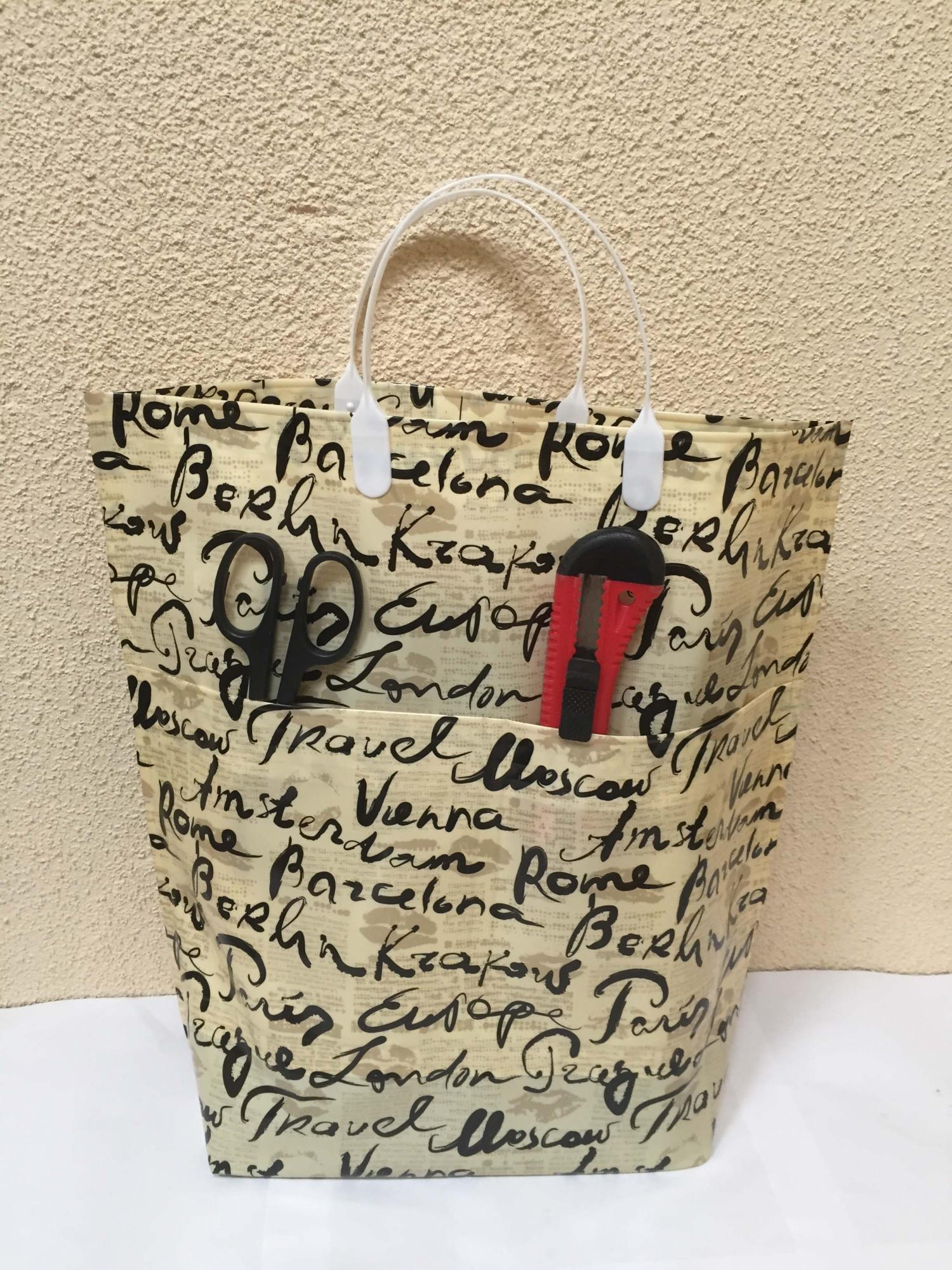 Пакет с пластмассовыми ручками (37х37+10) Подписи городов с карманами 10/50
