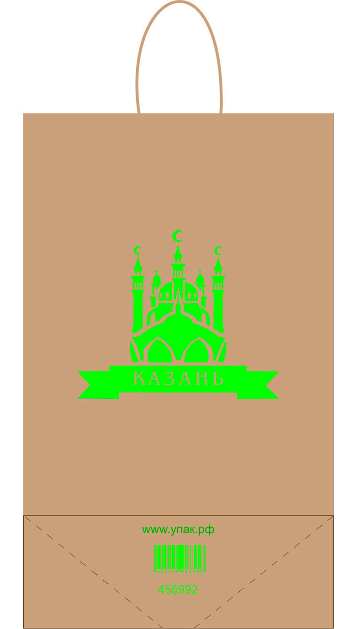 Пакет бумажный крафт с кручеными ручками 220х120х285 Экокрафт Казань 250/250 купить в Нижнекамске с доставкой оптом и в розницу