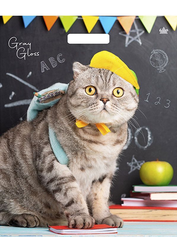 Пакет с вырубной ручкой (39х48)-50 Грэй Глосс Ученый кот Тико 50/500 купить в Нижнекамске с доставкой оптом и в розницу