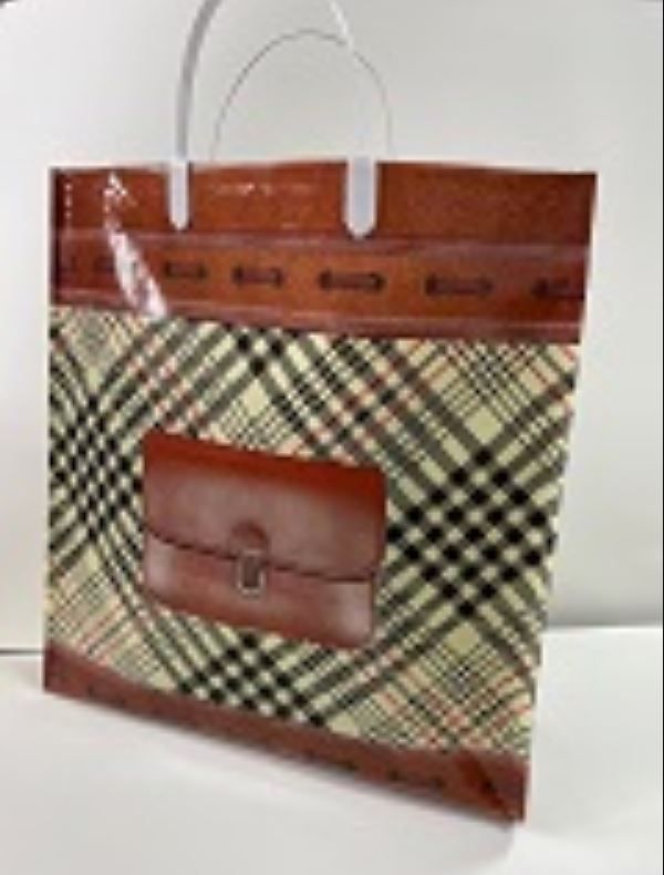 Пакет с пластмассовыми ручками (35х36+10) объемный Клетка новый 10/50