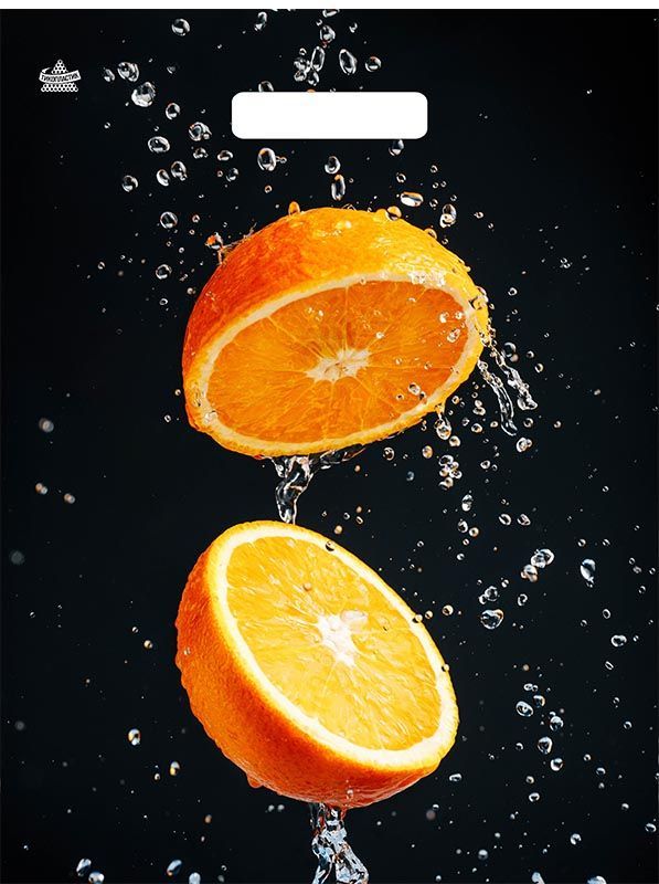 Пакет с вырубной ручкой (31х40)-60 Апельсиновый взрыв ламинат Тико 50/500 купить в Нижнекамске с доставкой оптом и в розницу
