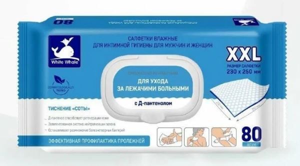 —Салфетки влажные White Whale Для лежачих больных (80) 1/10
