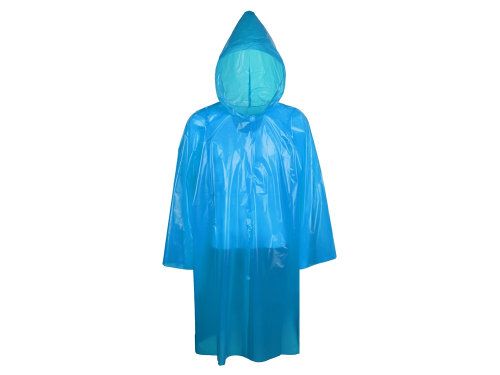 Плащ-дождевик с рукавами и капюшоном на липучке голубой ПВД 55 мкм 1/100