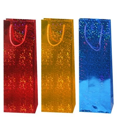 Пакет подарочный бумажный под бутылку 12,3x36,2x7,8см Голография 1/360 оптом и в розницу в Нижнекамске, цены в каталоге с доставкой