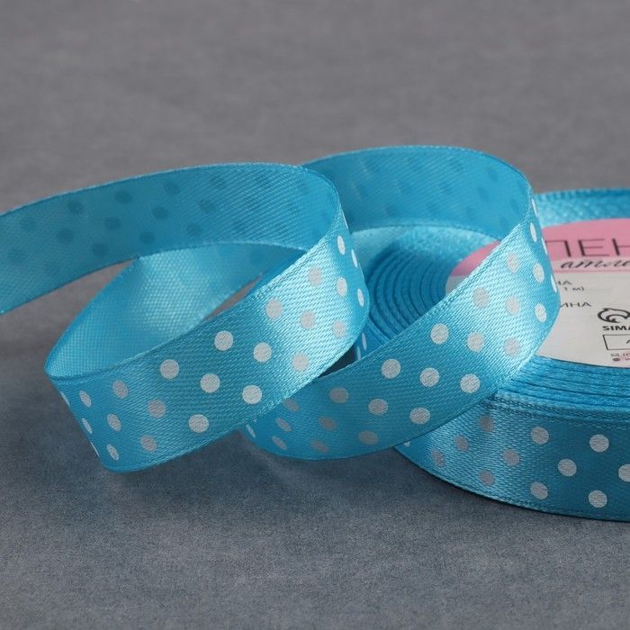 Лента атласная 15мм 23м голубая Горошек 10/10 оптом и в розницу в Нижнекамске, цены в каталоге с доставкой