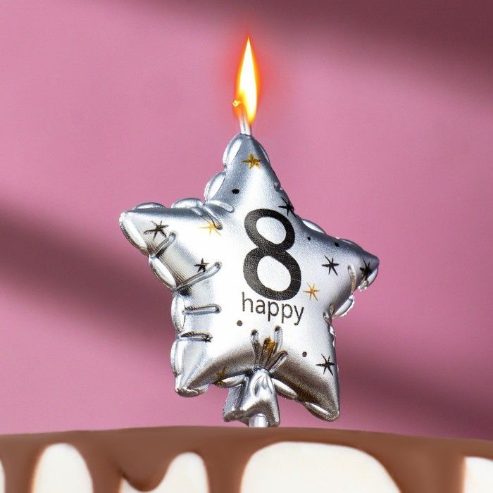 —Свеча для торта Звезда Цифра 8 серебро 1/30/360