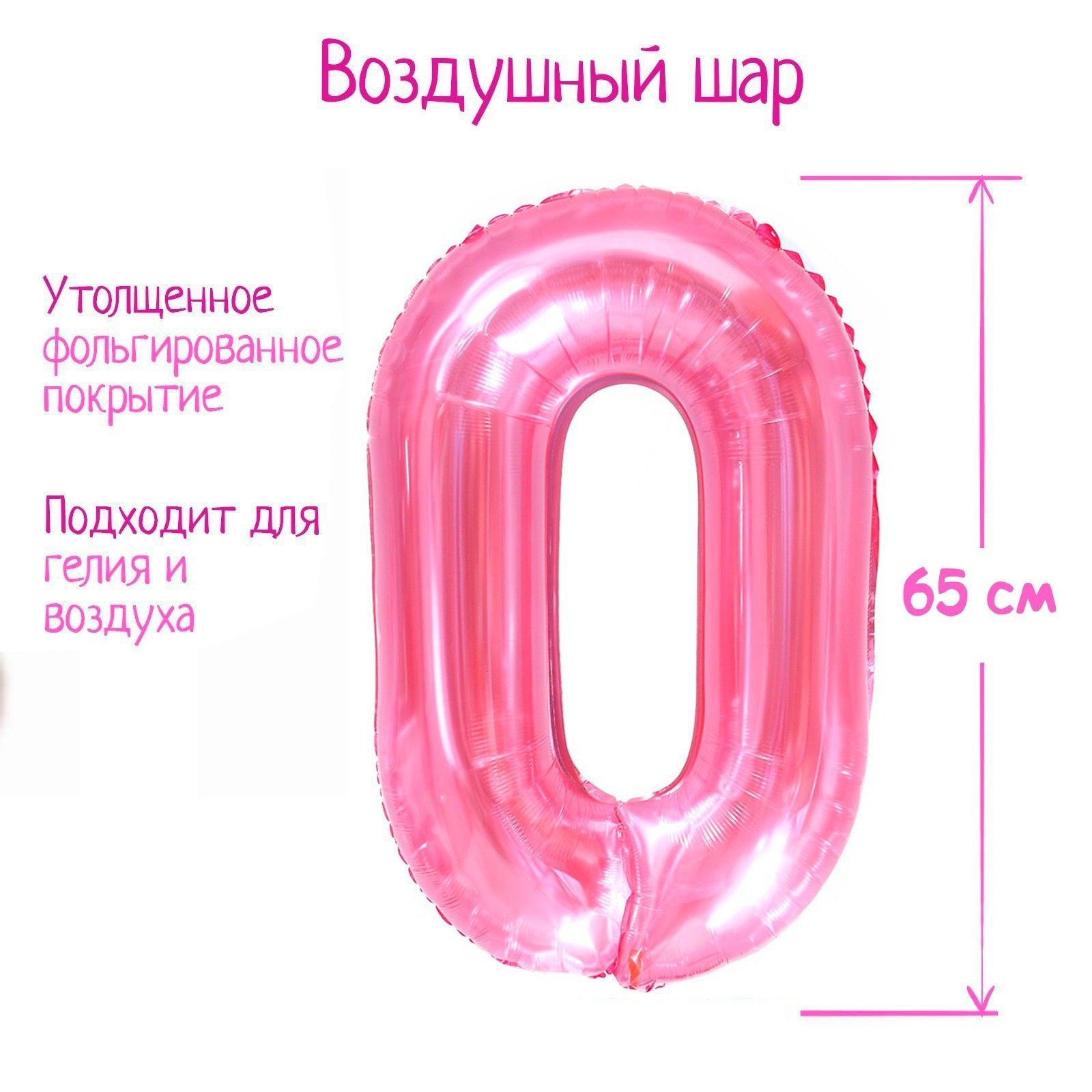—Шар фольгированный Цифра 0 65см прозрачно-розовый 1/25/600