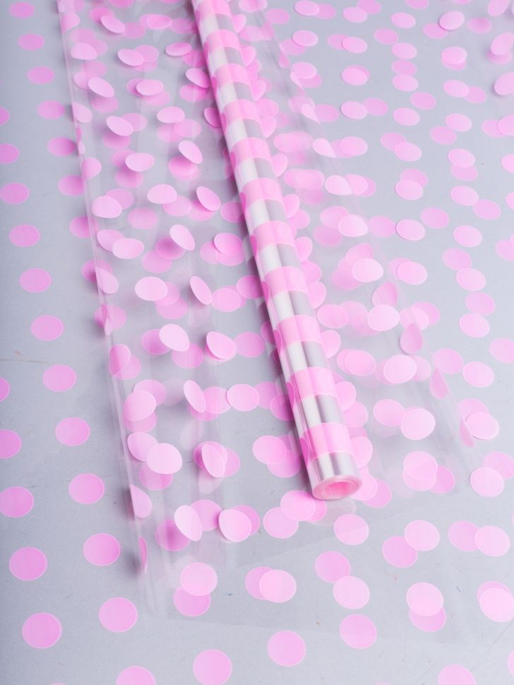 Ролик 70см х8м пленка полипропилен с рисунком Горошек розовый 1/10