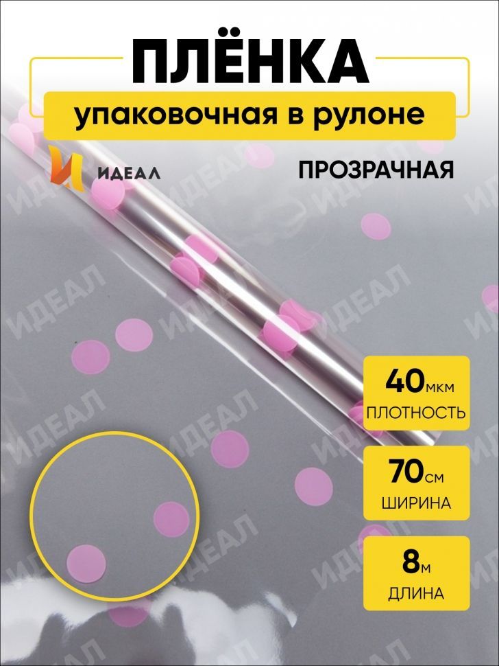 Ролик 70см х8м пленка полипропилен с рисунком Горошины розовый 1/10 оптом и в розницу в Нижнекамске, цены в каталоге с доставкой