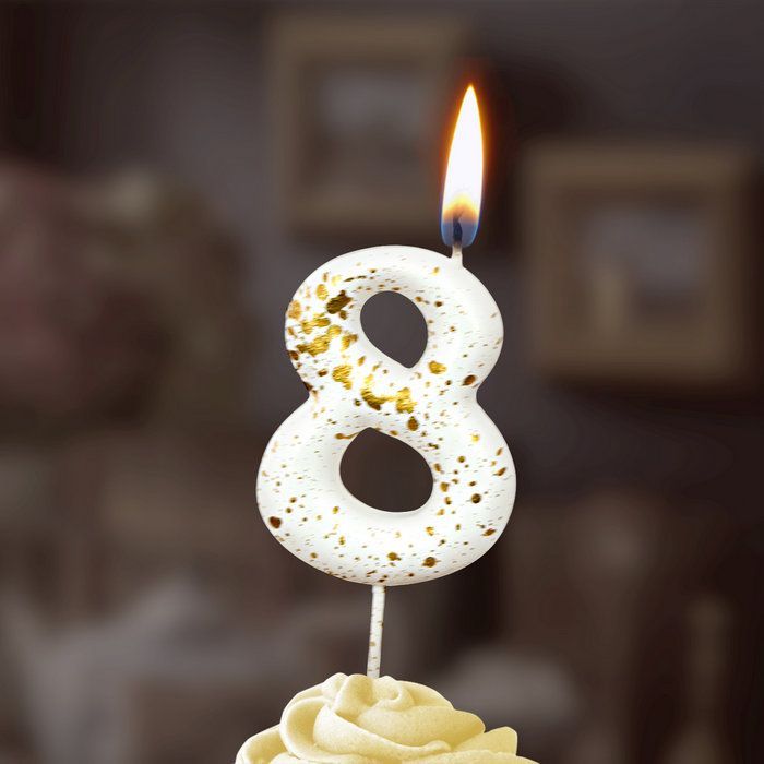 Свеча для торта Белые брызги Цифра 8 1/30 оптом и в розницу в Нижнекамске, цены в каталоге с доставкой