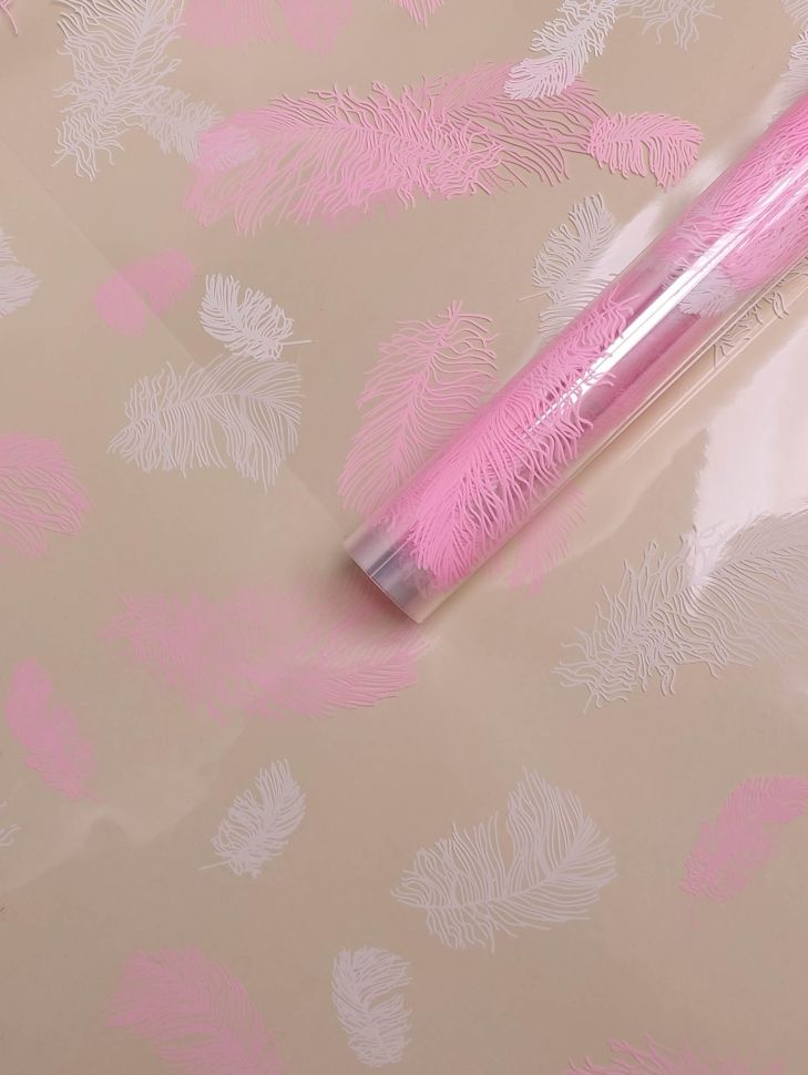 —Ролик 60см х 8,5м пленка полипропилен Перышки белый/розовый 1/10