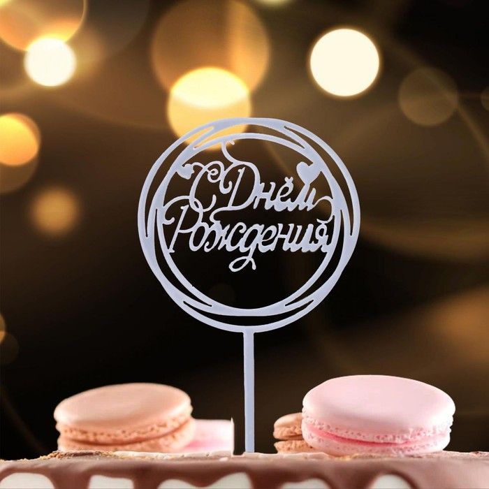 Топпер для торта С днем рождения, серебряный 1/20 оптом и в розницу в Нижнекамске, цены в каталоге с доставкой