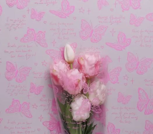 —Ролик 70см х8м пленка полипропилен с рисунком Бабочки розовый 1/10