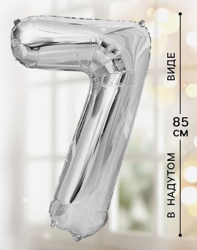 —Шар фольгированный Цифра 7 85см цвет серебро 1/20/500
