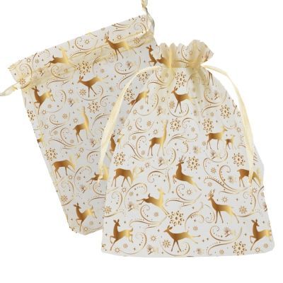 НГ Подарочный мешок текстильный ОРГАНЗА Олени 20х30см 1/50/250 купить оптом и в розницу в Нижнекамске с доставкой недорого