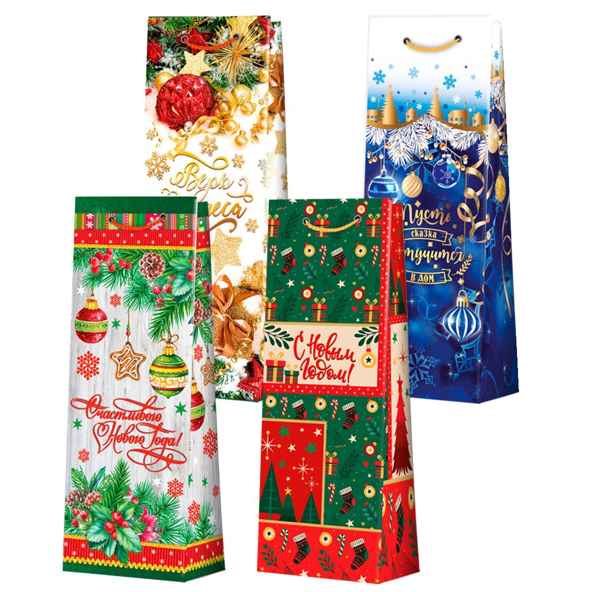 НГ Пакет подарочный бумажный под бутылку (12,3x36x7,8) Микс 1/360 купить оптом и в розницу в Нижнекамске с доставкой недорого